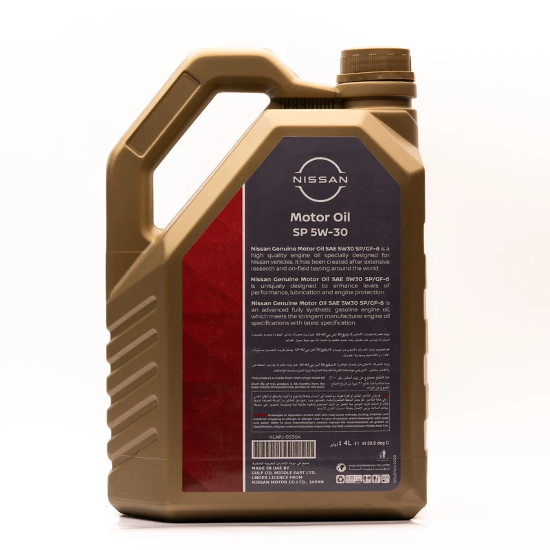 سطح کیفی API این محصول SN/CF است و به توصیه نیسان موتورز از آن میتوان برای کلیه خودروهای جدید تولیدی این شرکت استفاده کرد. این محصول علاوهبر روانکاری، قدرت تمیزکنندگی مناسبی دارد و مانع از ایجاد رسوبات و ایجاد خوردگی و واکنش اکسیداسیون در بخشهای متحرک موتور خودرو میشود. این موضوع موجب افزایش راندمان موتور خودرو شده و در کاهش میزان مصرف سوخت تاثیر مثبتی دارد. گرانروی این روغن موتور 5W30 است که موجب میشود به راحتی بتوان از آن در آبوهوای گرم و سرد (چهار فصل سال) استفاده کرد. توصیه شرکت برای تعویض این روغن موتور 10000 کیلومتر همراه با تعویض فیلتر روغن اصلی می باشد.